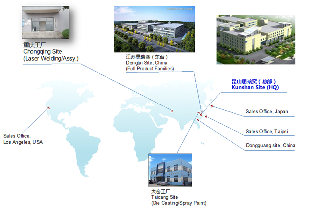 思瑞奕電子有限公司成立于2010年10月,注冊(cè)資金7500萬(wàn)人民幣,總部位于江蘇省昆山市,在重慶、江蘇東臺(tái)、江蘇太倉(cāng)設(shè)有分廠,公司于2011年通過ISO9001/ISO14001認(rèn)證,2013年通過高新技術(shù)企業(yè)和TS16949(IATF)體系認(rèn)定,2016年先后通過知識(shí)產(chǎn)權(quán)管理體系認(rèn)證、安全生產(chǎn)標(biāo)準(zhǔn)化認(rèn)證,2017年獲頒江蘇省民營(yíng)科技企業(yè)、2018年先后獲得蘇州市人民政府認(rèn)定企業(yè)技術(shù)中心、科技部認(rèn)定中小型科技企業(yè)、江蘇省最具成長(zhǎng)性高科技企業(yè)、2020年獲得江蘇省人民政府認(rèn)定企業(yè)技術(shù)中心、2021年獲得蘇州市瞪羚計(jì)劃入庫(kù)企業(yè)、江蘇省省級(jí)工程技術(shù)研究中心、江蘇省專精特新中小企業(yè)等榮譽(yù)稱號(hào)......